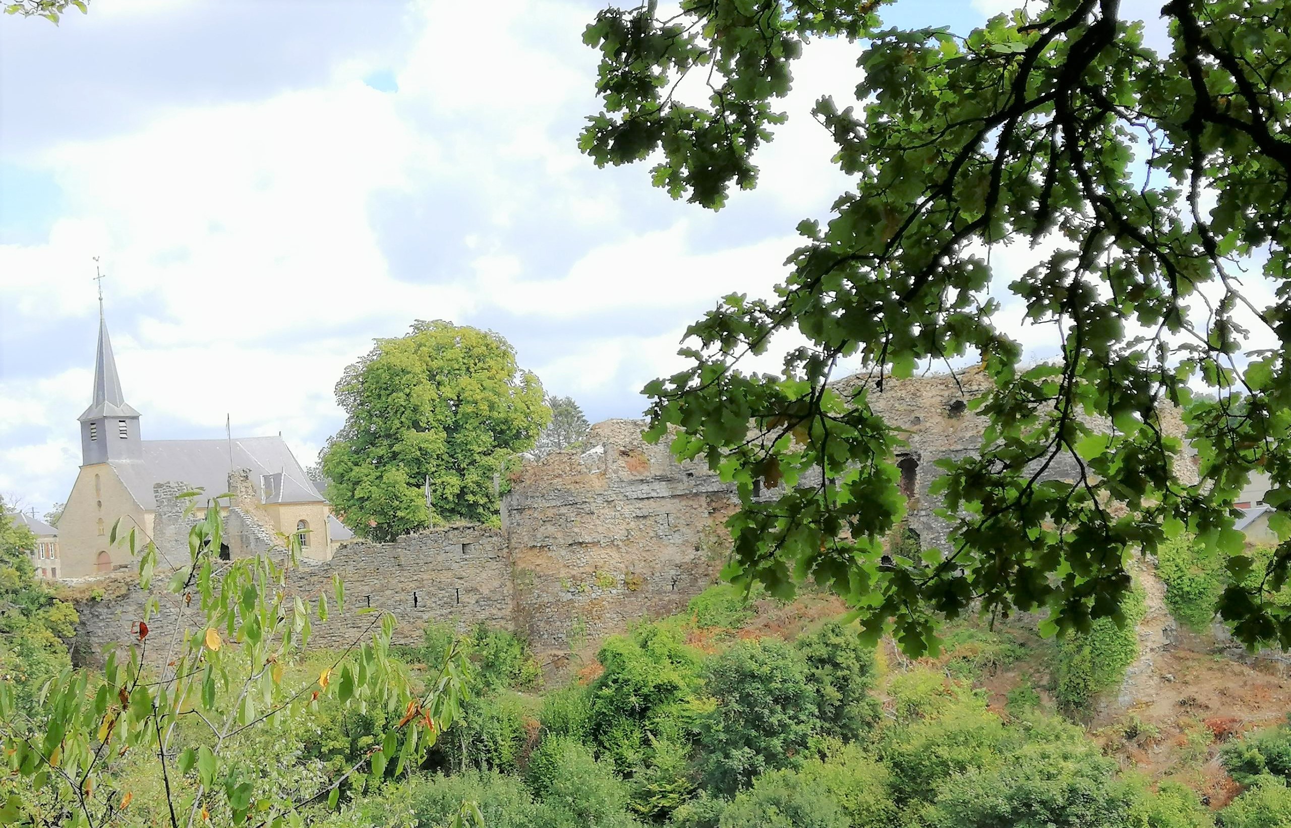 Nous marchons sur des chemins bien agréables à l'ombre de grands chênes et sapins, direction les étangs qui délimitent l'entrée de Sécheval, puis remontons vers Renwez et retour à Montcornet, après une dizaine de kilomètres pour y retrouver son château féodal et les cinq villages du Montcornu près des étangs.