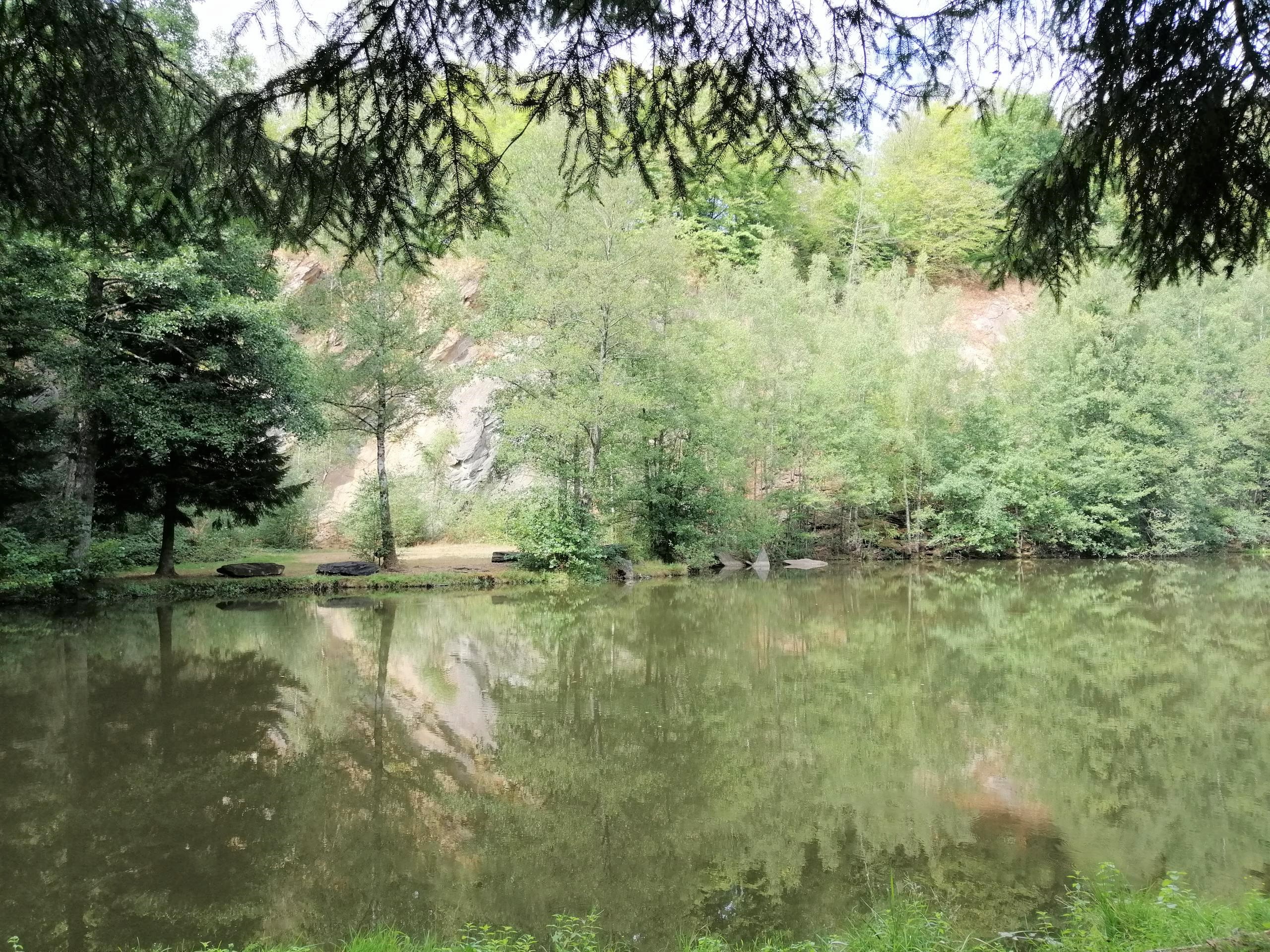 Nous entrons dans la forêt ardennaise et contournons la carrière qui a fourni les schistes pour notre autoroute ardennaise.