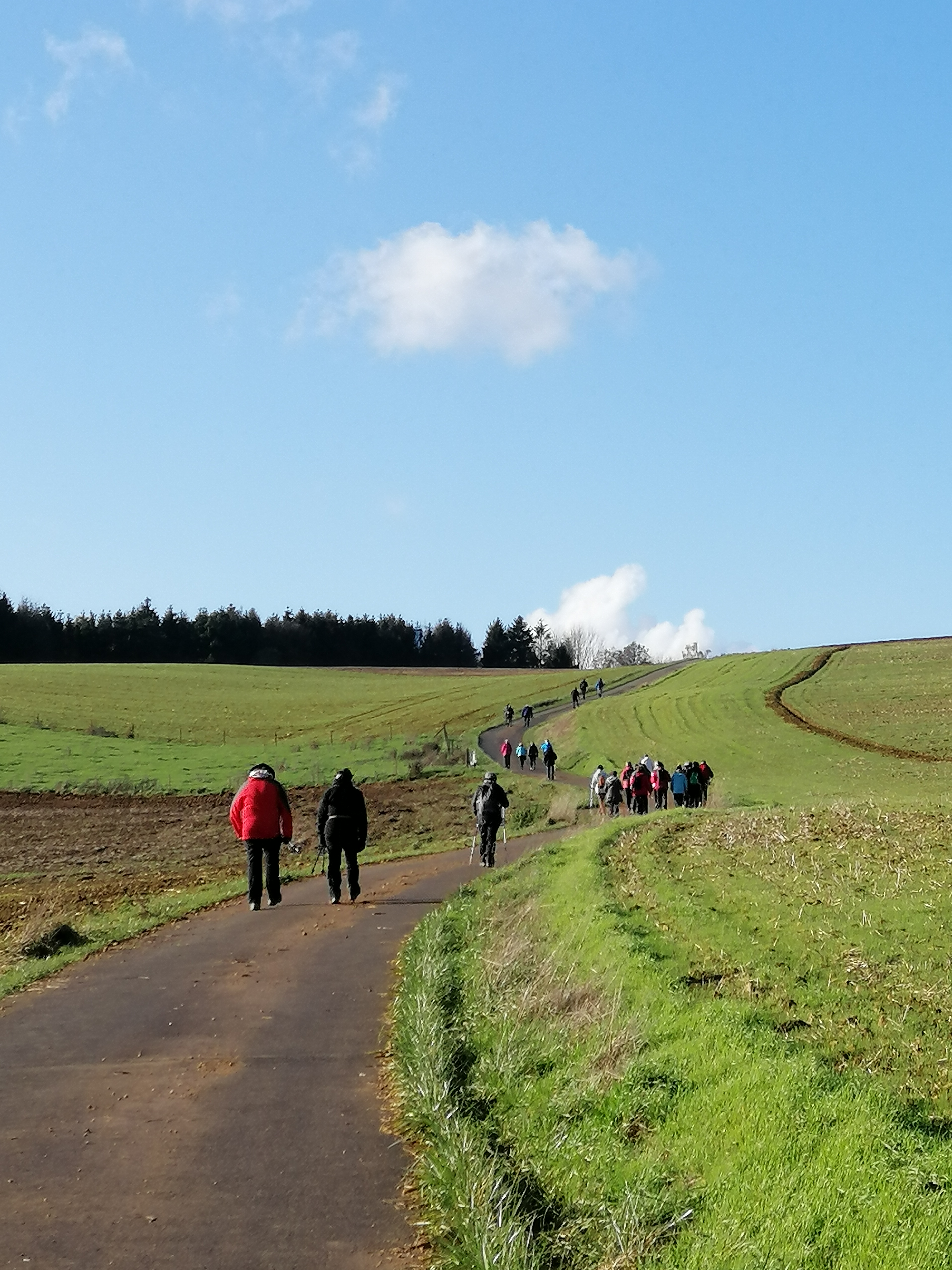 Si le brouillard intense nous empêchait d'admirer le panorama, c'est dans une joyeuse ambiance et d'un bon pas que nous avons gravi la côte pour rejoindre le village de Sury.